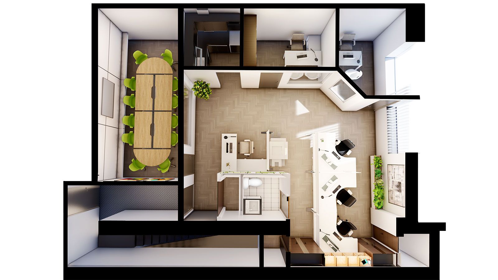 • Enclosed 2nd level offices with roughed-in HVAC unit